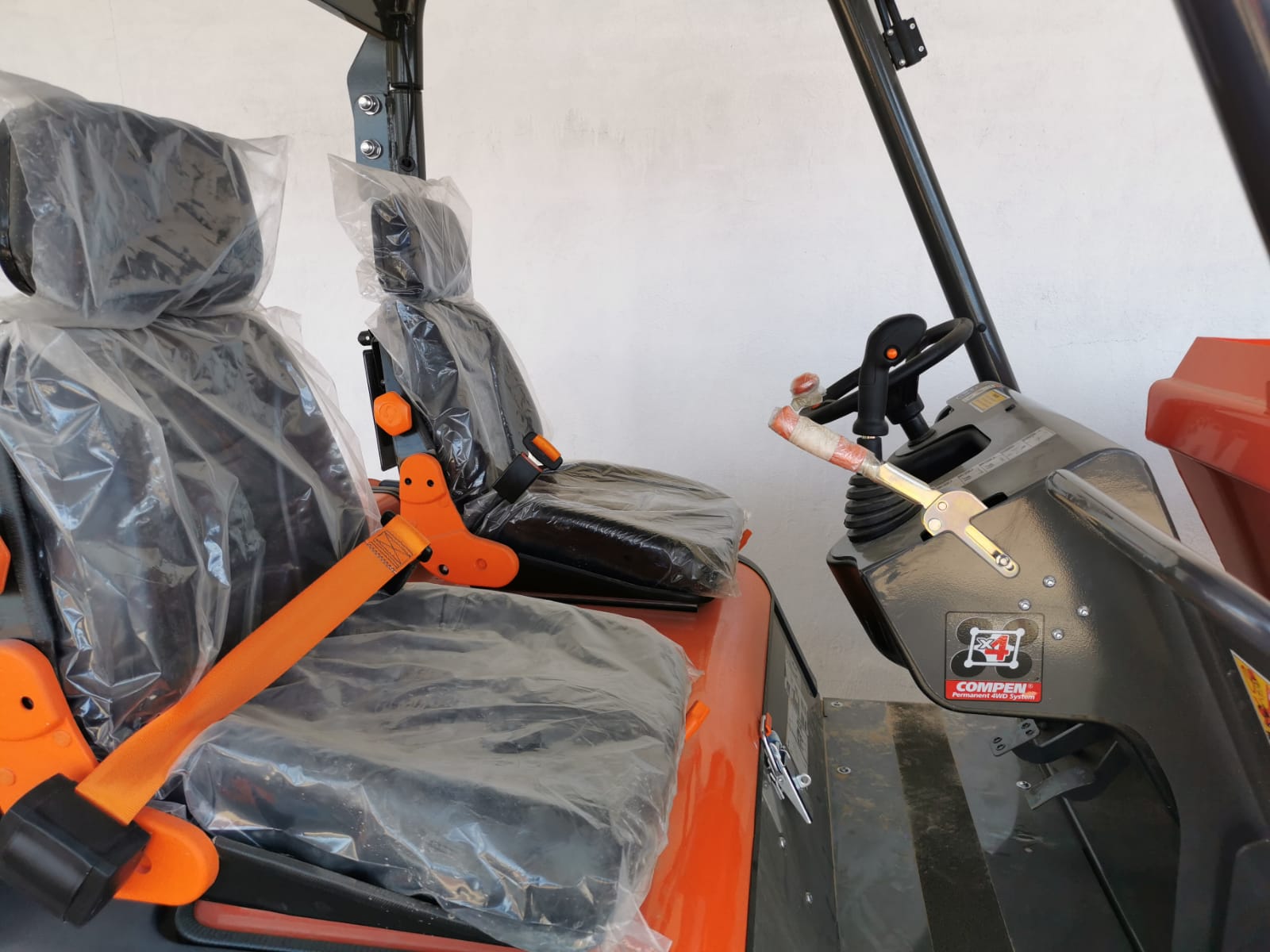 tracción 4×4. Transmisión hidrostática y Motor KUBOTA DIESEL V1505 de 4 cilindros y 1498cc con homologación EURO fase V de 18,2Kw. Fabricado en diciembre de 2025. Nuevo sin usar, solo matriculado para estock propio. Matriculado para poder moverse por la calle legalmente. Capacidad de carga hasta 2000kg.Incluye pala de autocarga, luces de circulación, gancho de remolque, dos asientos y descarga giratoria.